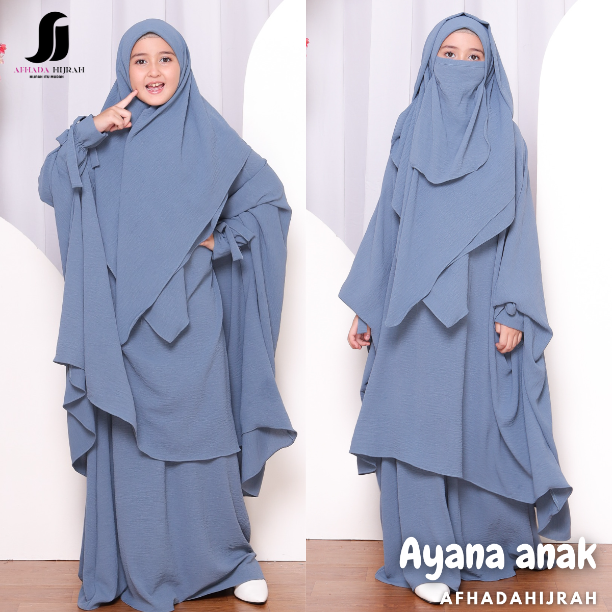 Menggunakan Crinkle Airflow (karakter kain lembut, empuk, nyaman, sangat ringan, tidak menerawang, jatuh, sedikit stretch, flowy, nyaman dipakai kapanpun dimanapun insyaaAllah), Kainnya berkelas bukan yg gerah apalagi panas sudah banyak testimoninya karena sudah dipakai di beberapa koleksi Afhadahijrah :)